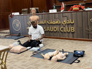 In the second phase of the Sports First Responder Program, the course was hosted by Misk care clinic in Riyadh on November 22-23, 2024, in the presence of a distinguished and effective presence of participants.the goal of the program was to have the minimum standard for participants in the ability to deal with emergency cases and deal with serious sports injuries such as concussion, swallowing tongue and making the right decision at the time of injury.